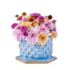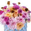 Ben "Mixed Floral". İçimde bulunan renkli krizantemler ve kuru çiçeklerle dolu olan bu saksı, sizi zarif ve enerjik bir dünyaya davet ediyor. İşte benim eşsiz çiçeklerim: