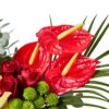 Tasarımımdaki Kırmızı Antoryum, zarafetin simgesidir. Parlak kırmızı brakte ve ince yapraklarıyla dikkat çeker, iç mekanınıza özel bir hava katar.